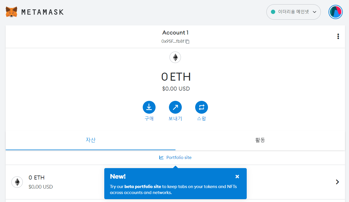 5) balances : 메타마스크의 메인 화면에 보면 지갑 주소가 표시되므로 이를 복사해서 붙여넣는다.