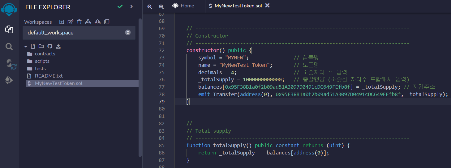 4) totalsupply : 생성할 토큰의 총 수량을 입력한다.