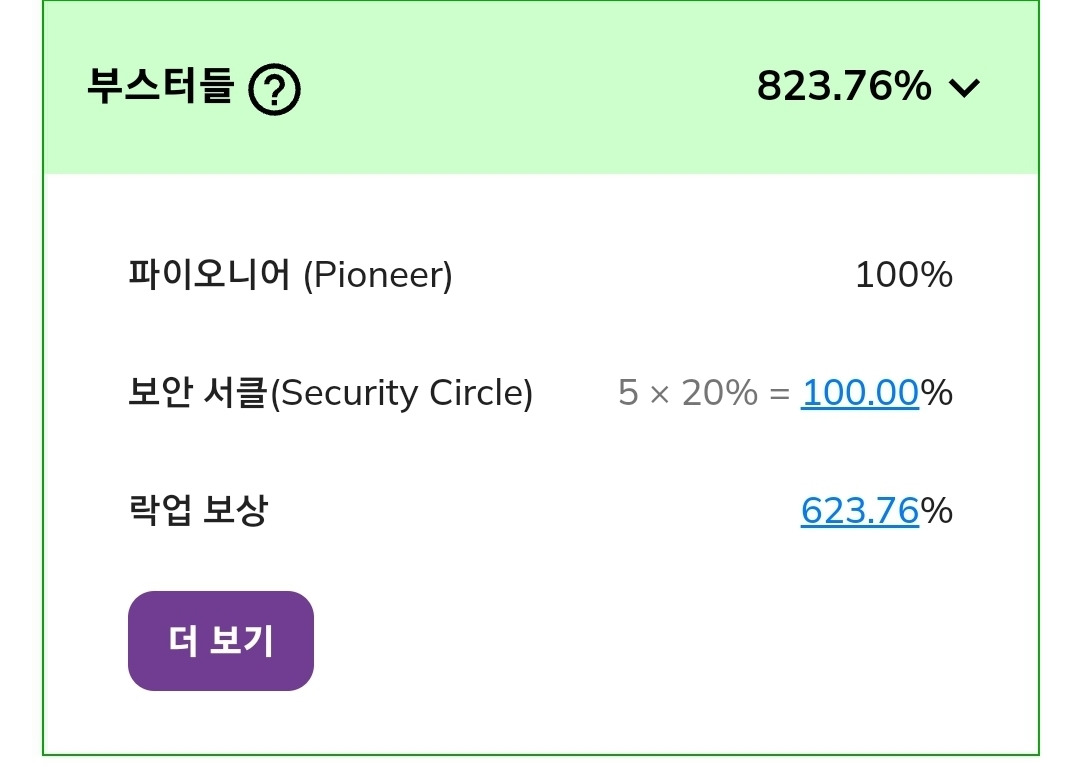 락업 비율 | 락업 기간 | 추가 보상 비율 | 총 획득량 증가율 |